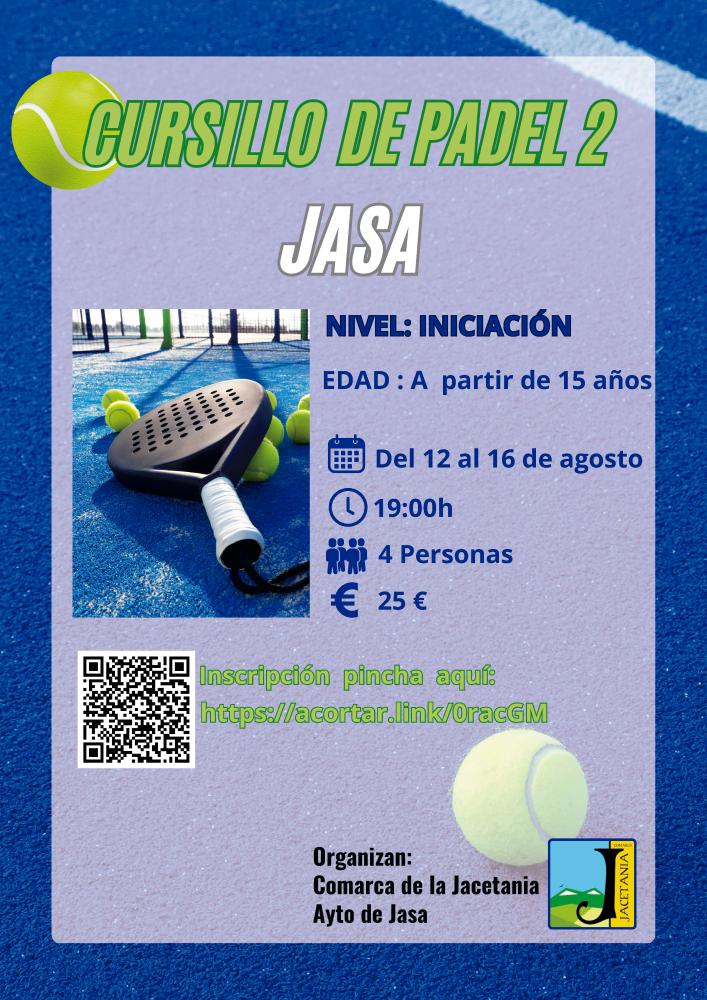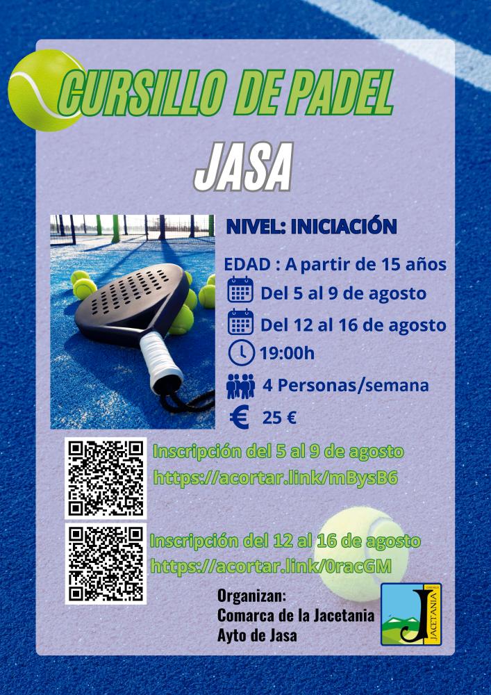 - Del 12 al 16 de agosto: https://jacetania.playoffinformatica.com/actividad/406/CURSILLO-DE-PADEL-JASA-SEGUNDA-SEMANA