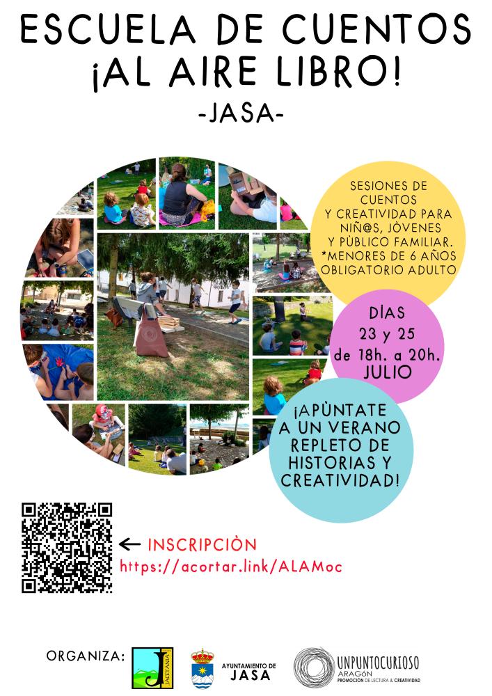 El 23 y 25 de julio de 18 a 20 horas vuelve la escuela de cuentos a Jasa con la 6ª edición de LA ESCUELA DE CUENTOS ¡AL AIRE LIBRO!