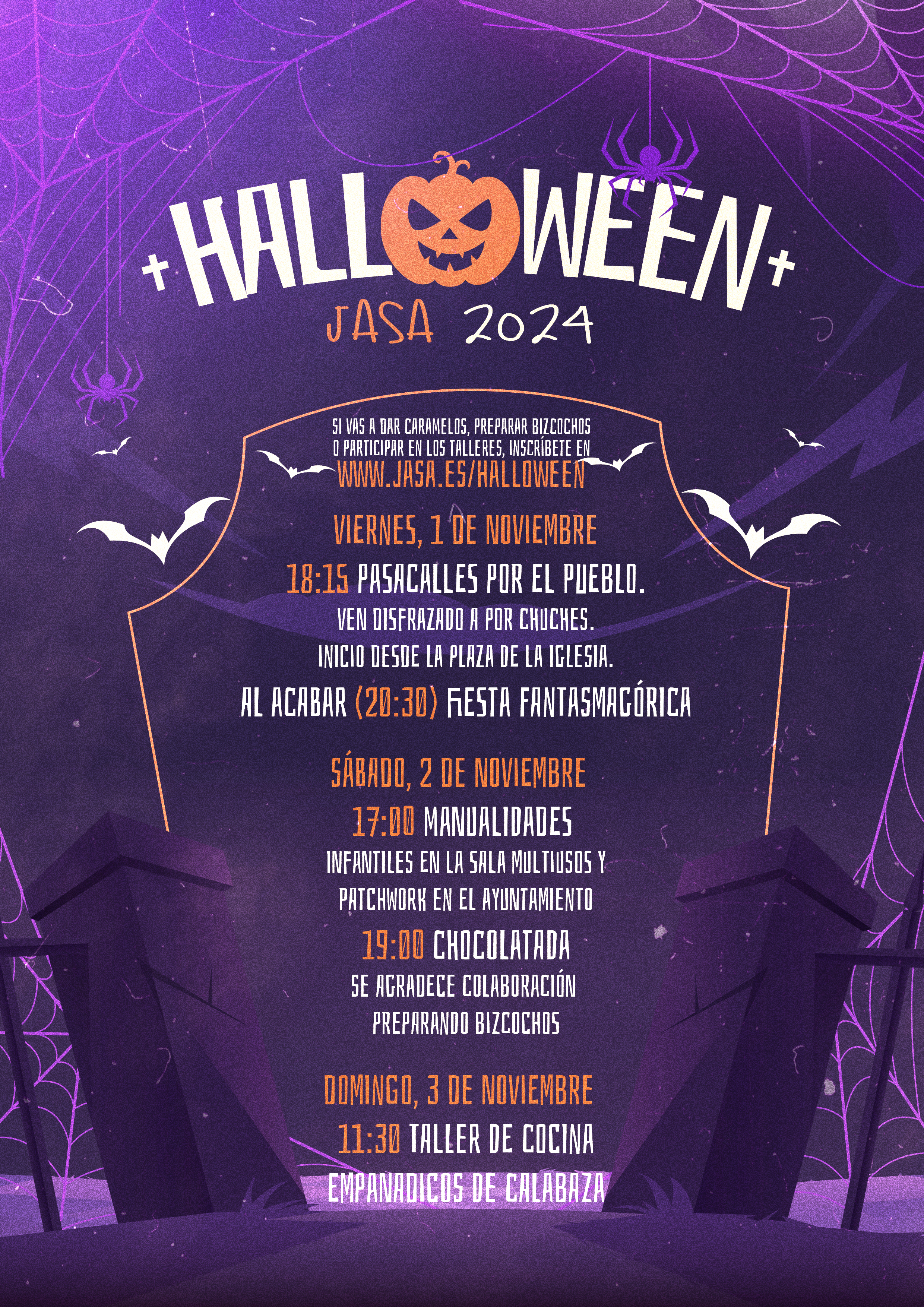 ¡Este año, Halloween en Jasa estará lleno de sorpresas!. Para inscribirte en cualquiera de estas actividades, completa el formulario en https://forms.gle/QLFQ5YhgTbKDcAeV9