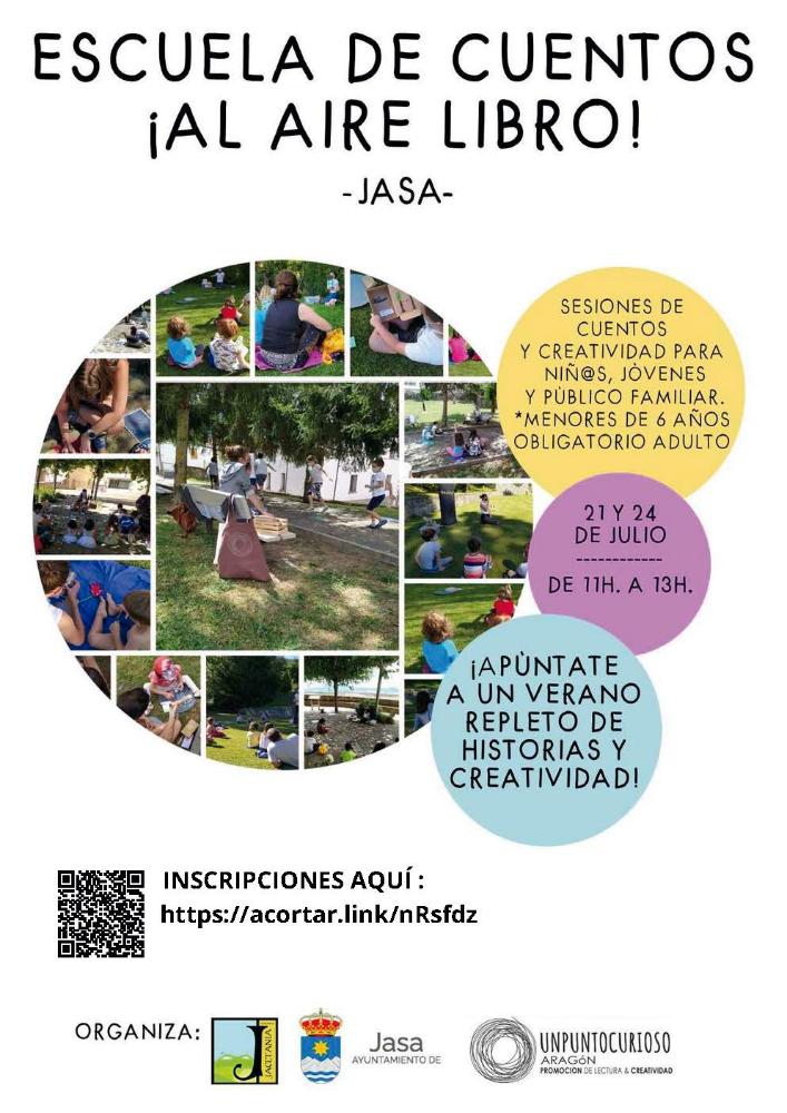 El 21 y 24 de julio de 11 a 13 horas vuelve la escuela de cuentos a Jasa en su 7ª edición